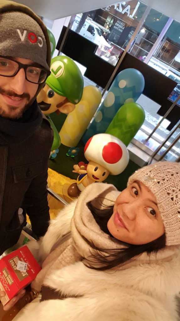 We spent our last bachelor/bachelorette night together at the Nintendo Store. It’s how us nerds do. And also it was one of the few places open when half of New York City was shut down due to the blizzard aftermath.